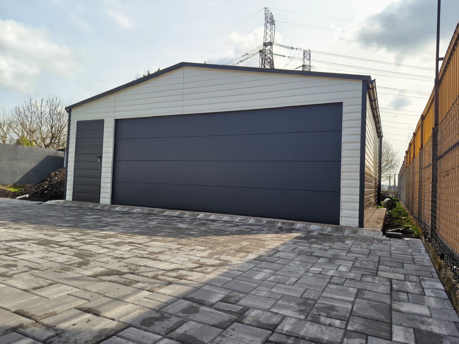 Garaż metalowy 6m x 6m z dachem dwuspadowym, brama segmentowa z automatyką i kompletnym wyposażeniem